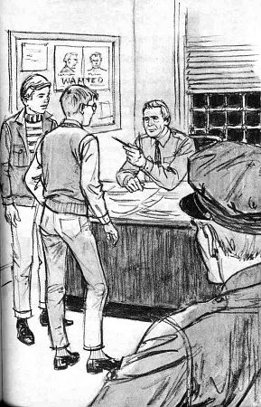 Hall's illustration on right) shows Bob and Harry being lectured