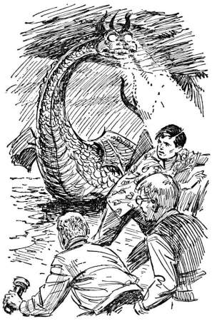 This illustration (Harry Kane's illustration on left, Roger Hall's illustration on right) shows the boys' first encounter with the coughing dragon.