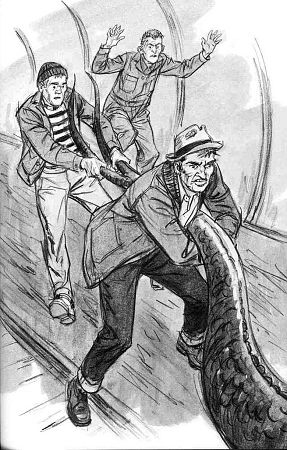 as Jupe and Bob try to make off with the dragon down the train