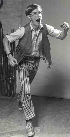 Group 1 This group of photos was taken of the same boy. In photos #1 and #3, he is dressed as Pete, but in photos #2, and #4 he is dressed as Bob. Photo #1 was used as the basis for the drawing of Pete on the cover of the Windward paperback edition of The Secret of Terror Castle, while photo #2 was used as the basis for the drawing of Bob on the hardback version of The Secret of Phantom Lake. Interestingly, the pose in photo #4 is very similar to the pose of Pete on the cover of The Secret of Phantom Lake; so it's possible (but unprovable at this point) that Mr. Vebell used this photo as well on that particular cover. It's also a real possibility that Mr. Vebell used photo #3 (or a similar one) as the basis for the model of Pete on the cover of the Windward paperback editionof The Mystery of the Stuttering Parrot. The facial expression and hair are certainly the same, and changing Pete's position in the illustration from that used in the photo would not be a major effort for a talented illustrator. You can tell from the photos that Mr. Vebell dressed the boy in these photos as he envisioned the boys would appear. As Pete, the boy wears a jacket, while as Bob, he wears a fringe vest. The pants are definitely typical of the 1970s; so these photos were certainly taken during the time when Mr. Vebell was drawing the Windward cover for Terror Castle and the hardback cover of Phantom Lake. |