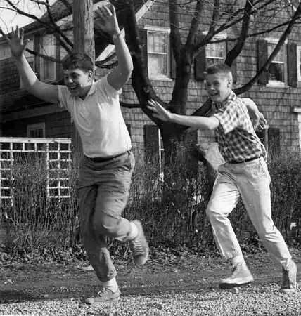 Because it was so long ago, Mr. Vebell obviously doesn't remember every detail of each photo that he took; but a little detective work in inspecting the photos helps put the story together of the photos. I have grouped the photos according to what I believe are different photo sessions. This is based on the physical condition of the photos (paper type, contrast, etc.), the appearance of the boys themselves, and the clothing they wore. The thumbnail images of the photos are displayed below. Clicking on them will display a larger size image of the photo. Enjoy!