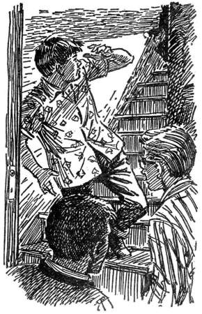 Hall's illustration on right) shows Jupe, Pete, and Gus as they