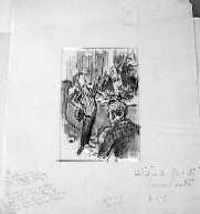 In the late summer of 2004, I was able to purchase some pieces from the Harry Kane collection. I first viewed some of these pieces in the late summer of 2003 and was immediately struck by one drawing in particular that was taken from The Secret of Terror Castle. I stared at this sketch several times to make sure that I was seeing it right. Was it possible? Was Kane's intention really to draw a picture of Hitchcock in the first illustration of Terror Castle? Of course, it was easy to see what had happened.