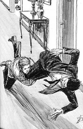 This illustration (Jack Hearne's on left, Roger Hall's on right) shows Pete tackling Gomez after Gomez attacked Santora in the hotel room.