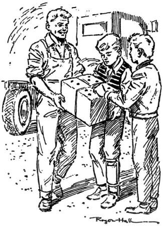 scenes. Hall's illustration shows Konrad giving a box containing