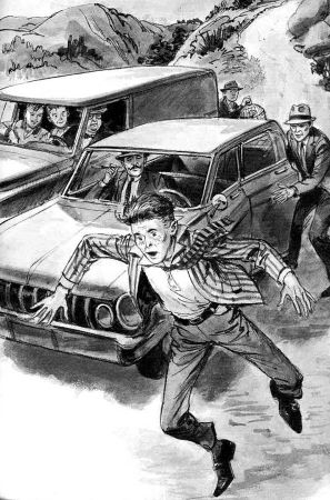 NOTE: The illustration shows Jupe and Pete in the truck with Mr. Claudius when it should be Bob and Pete.