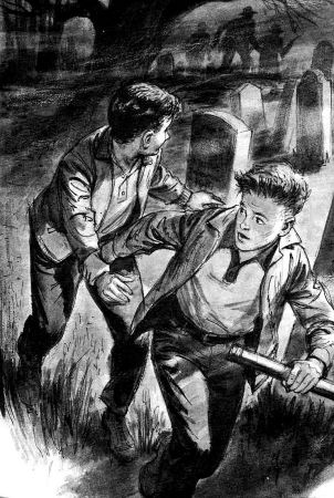 Hall's illustration on right) shows Pete and Jupe as they try to