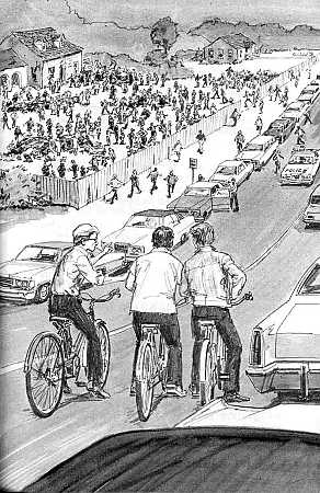 This illustration by Jack Hearne shows the boys approaching Dingo