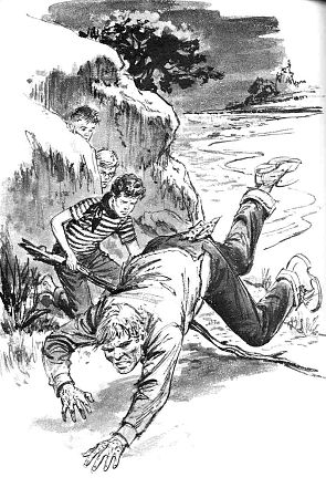Hall's illustration on right) shows Chris tripping one of the