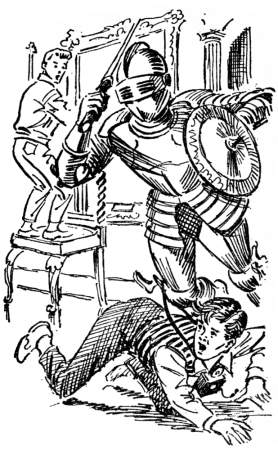 Hall's illustration on right) shows Bob dragging a suit of armor