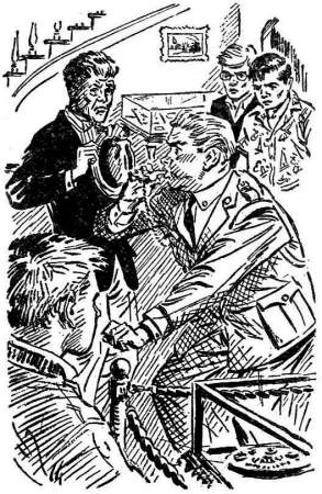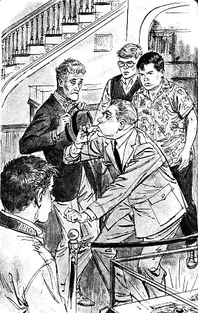 Hall's illustration on right) shows the Three Investigators at